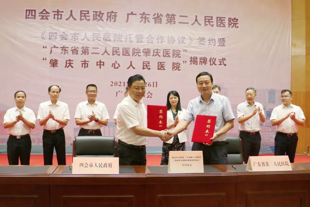 ▲2021年9月,省二医党委副书记、院长瞿红鹰代表省二医与四会市人民政府签订托管协议