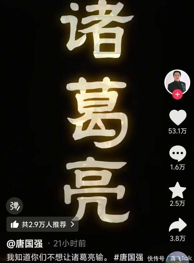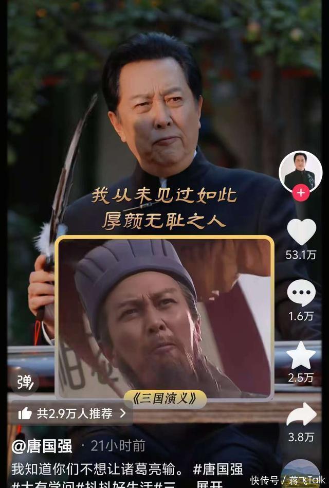 当然老唐这绝对不是在骂人,这是老唐在玩诸葛丞相的梗,诸葛丞相是史书和影视剧中的经典人物,同时他也是无数人心中的意难平, 视频一经发出,点赞量就高达五十多万,这足以看出人们对这位老戏骨的喜欢,与对“丞相”的敬重。