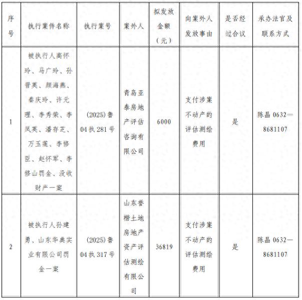 为进一步严格执行案款管理园十州,规范执行案款发放程序,确保执行案款发放安全,根据最高人民法院《关于执行款物管理工作的规定》等相关规定要求,现对以下执行案款发放事宜进行公示,公示期为三个自然日(2025年11月7日-11月9日),案件当事人或者其他利害关系人如有异议应当在公示期内提出并提交相关证据材料,公示期满无异议的,本院将按照执行案款管理的相关规定办理发放手续。