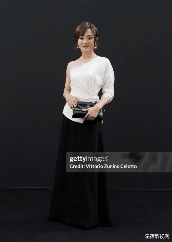 白色斜肩上衣搭配黑色长裙,简简单单穿出了高级感,低调优雅。