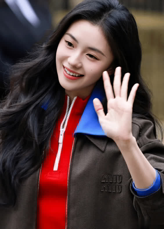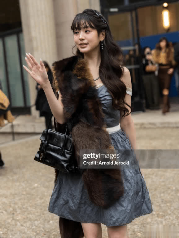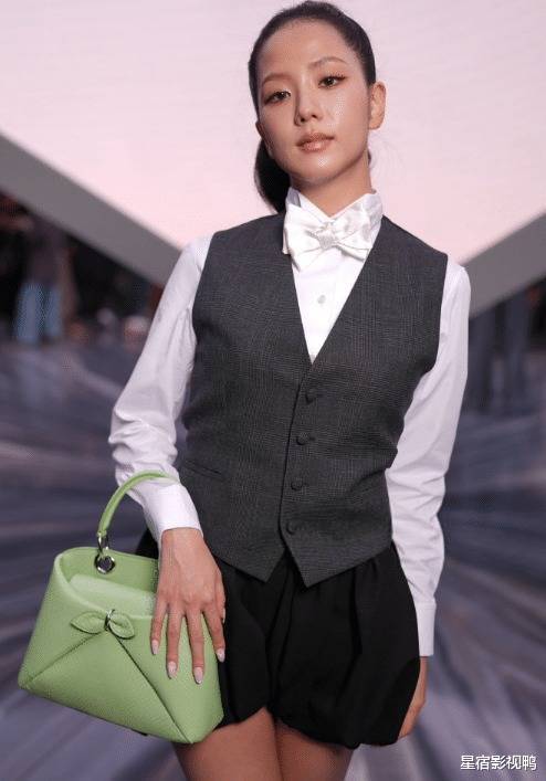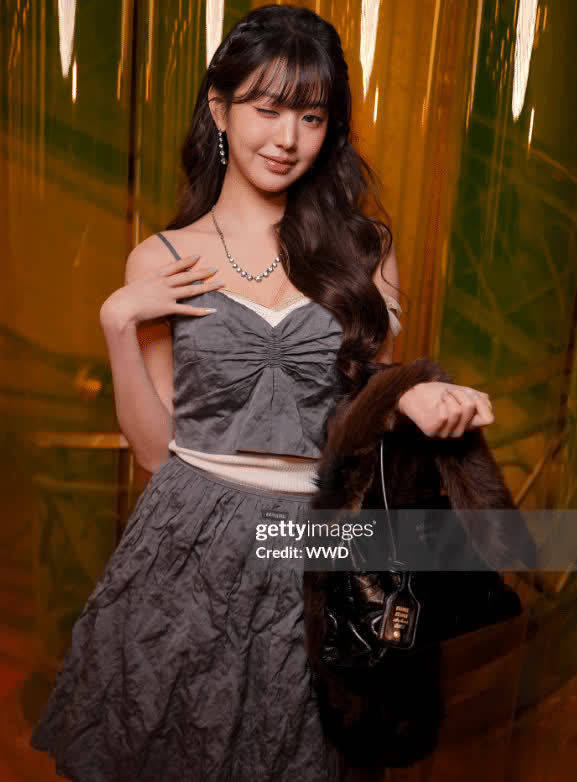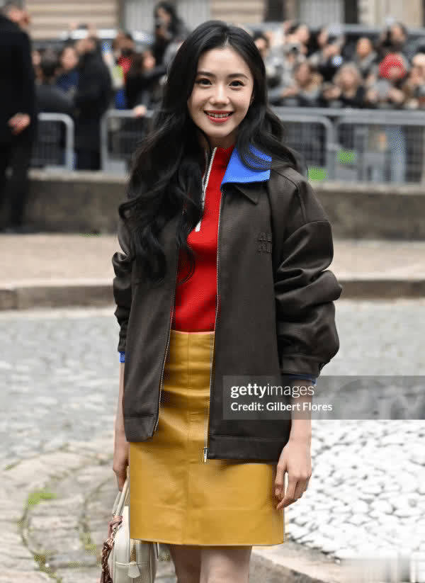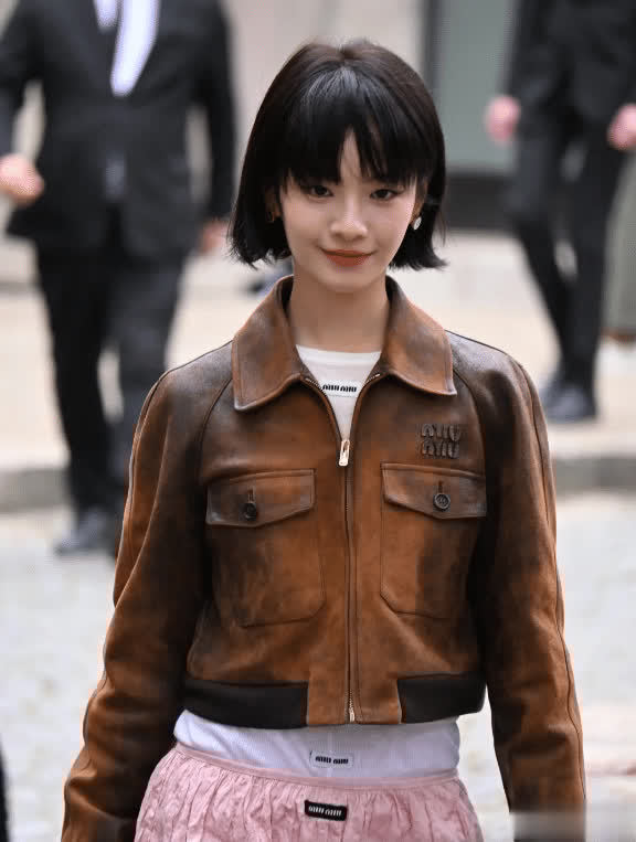 相比之下,同样亮相Miu Miu秀场的韩国女团IVE成员张元英显得格外寡淡。